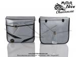 Sacoches  Chamrousse  C03 Gris Métallisé  1448  - Finitions Noires - Fixation par sangles cuirs - pour Mobylette Motobécane AV46 / AV49 / Spéciale / Peugeot 101 / 102 / 103 (...) (la paire)